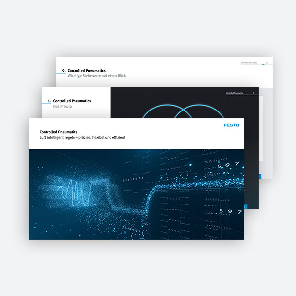Controlled Pneumatics enables stepless and dynamic closed-loop control, allowing pressure, flow and movement to be realized with up to 60% less compressed air consumption.